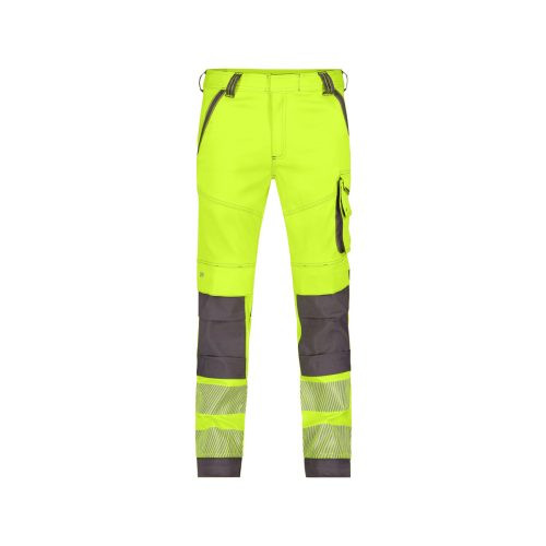 Jól láthatósági derekas nadrág, fluoreszkáló és rugalmas anyagból, fényvisszaverő szalaggal.