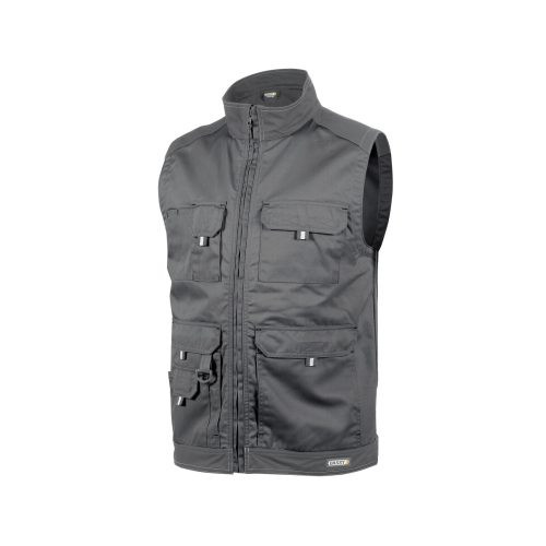 Állítható derékrésszel rendelkező, sok zsebes mellény.