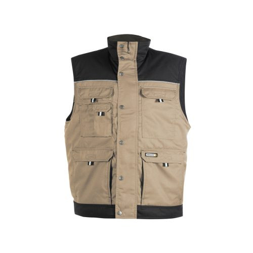 Állítható derékrész patentokkal, rejtett 2-irányú cipzár.Hosszabb hátrész, két elülső zseb, két elülső zseb patenttal, kézmelegítők.Két mellzseb, mobiltelefon zseb, tolltartó, belső zseb.Erősített varrással készült. Fényvisszaverő elemeket tartalmaz.
