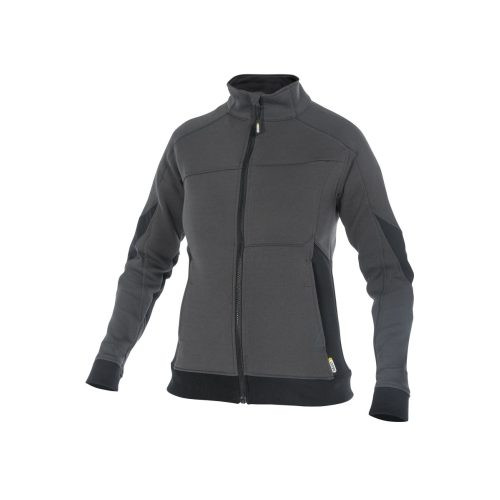 Tartós és rugalmas. Könyökfoltjai megerősített anyagból készültek.Állvédővel ellátott cipzár, két cipzáras elülső zseb.Kötött mandzsetták és alj, kontrasztos varrás.