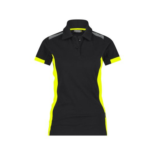 Rövid ujjú galléros póló, amely jól láthatósági elemekkel van ellátva.