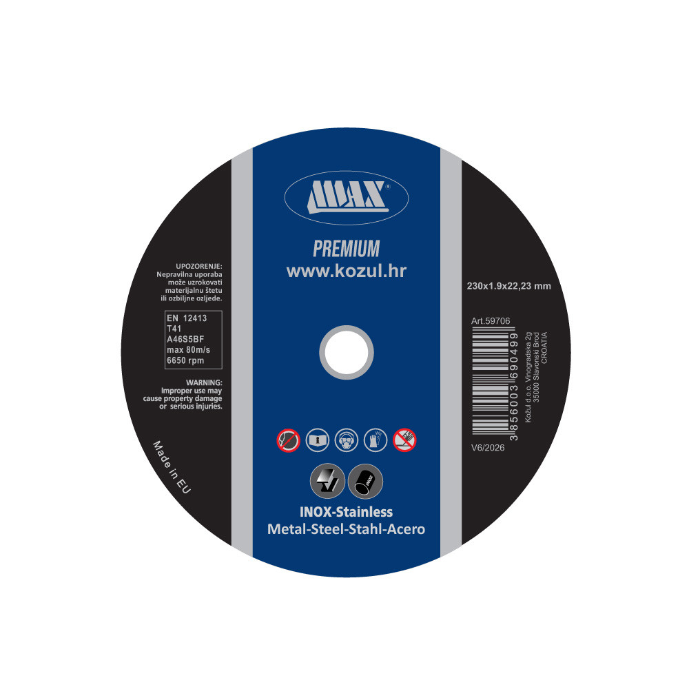 MAX Prémium vágókorong rozsdamentes acélra 230 x 1,9 x 22,23 mm